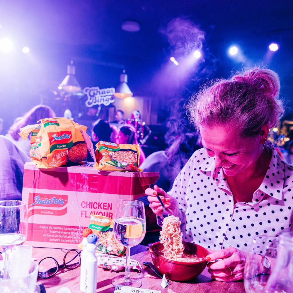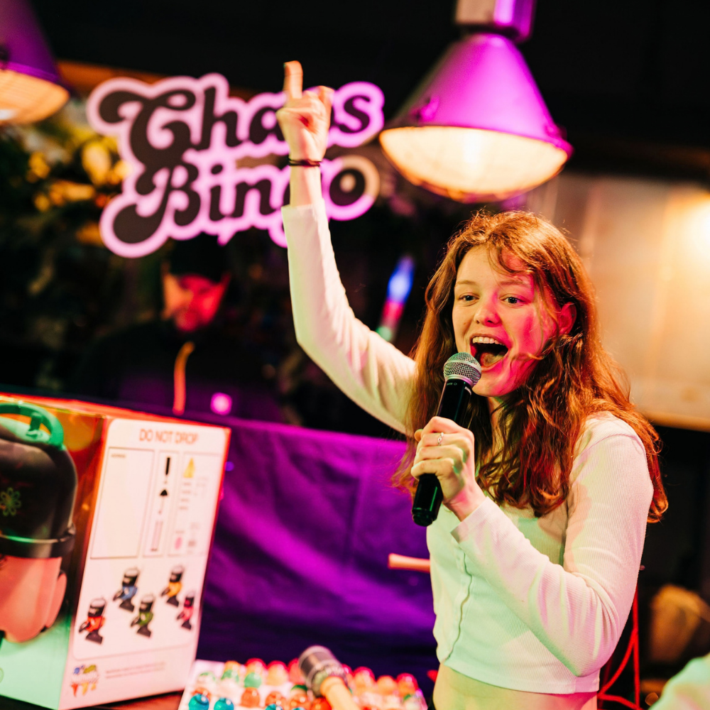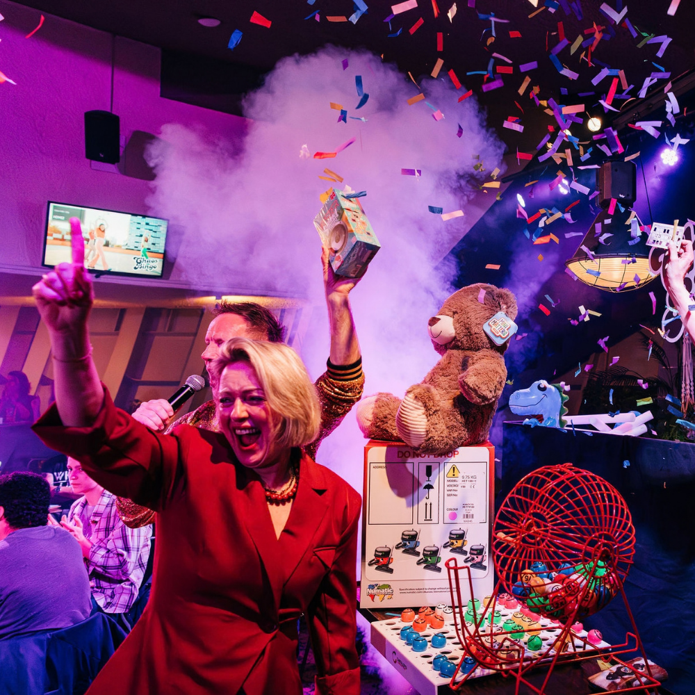 Van grand cafe’s en festivals tot bedrijfsfeesten: Chaos Bingo heeft al op talloze podia impact gemaakt en zet elke zaal moeiteloos in feeststand. Dit is geen achtergrondvermaak, maar een show waar iedereen in wordt meegezogen. Chaos Bingo is snel, speels en interactief, met een hoge funfactor. Over the top, onverwacht en altijd gezellig.